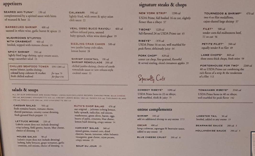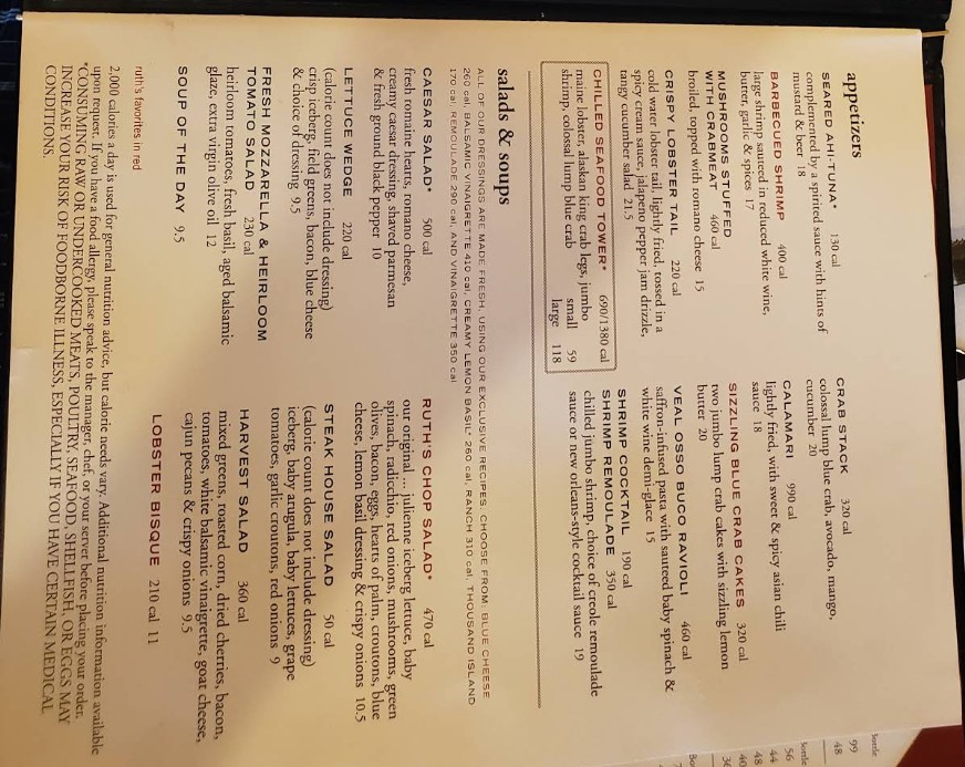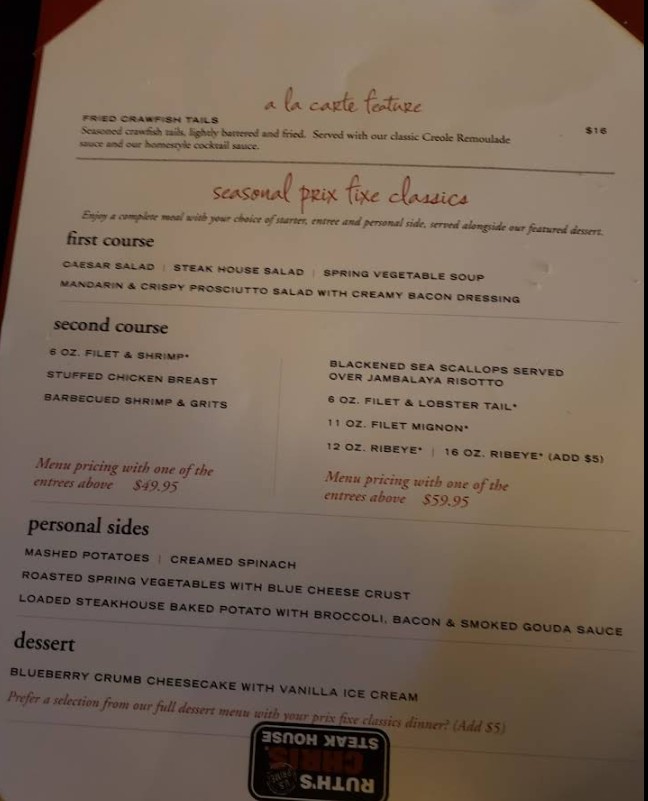 The server Dawn was great! He knows the menu! The food was great! The vibe was great! I had the lamb chops, asparagus and garlic mashed potatoes. The Ruth Chris salad was different but was very tasty 😋.
