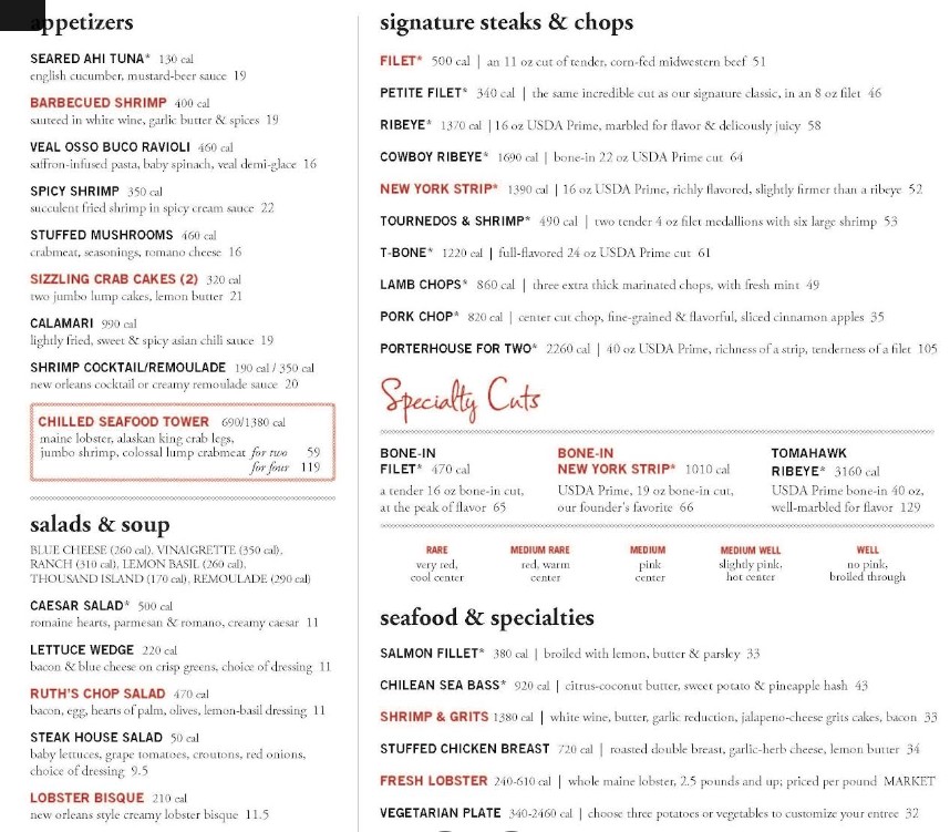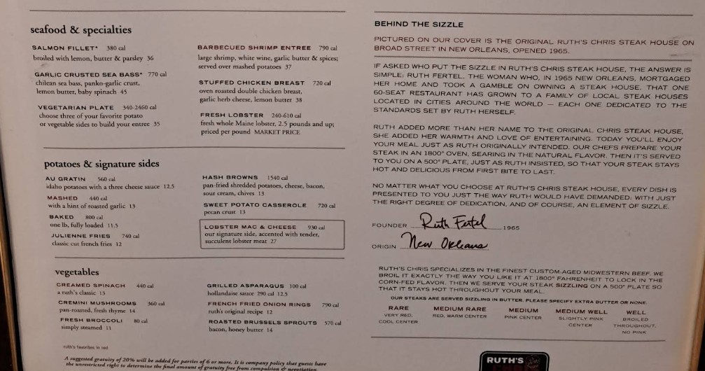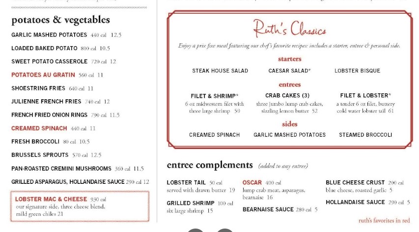 At Ruth's Chris Steak House, every dish is crafted to perfection, bringing you the ultimate fine dining experience. Our restaurant menu showcases sizzling USDA Prime steaks served on 500° plates, fresh seafood favorites, handcrafted appetizers, and indulgent desserts. Whether you’re here for a romantic dinner, a business meeting, or a celebration, our carefully curated menu and exceptional service ensure an unforgettable evening. Explore the Ruth's Chris Steak House Restaurant menu and discover why we’re renowned for premium steaks, signature sides, and timeless hospitality in the heart of Atlanta.